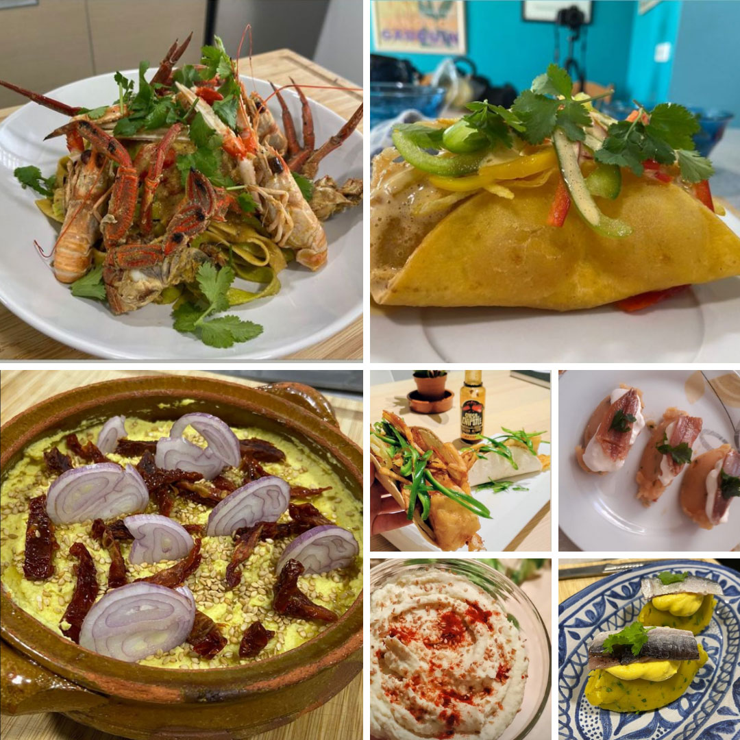 Hummus de garrofón, niguiris a causa limeña, taco fish and chips, pasta chilli crab… son algunas de las recetas que están aprendiendo las cerca de 50 personas que se han inscrito al curso para cocinar semanalmente platos elaborados por un chef. Como el contexto ha obligado a realizar el curso de manera virtual, se están usando las redes sociales para que las personas participantes puedan compartir su experiencia y sus platos con el fin de crear comunidad e interactuar con el resto de participantes. Las recetas de este taller de cocina tienen la característica de fusionar dos culturas. El resultado: un viaje gastronómico con una diversidad de sabores y colores.