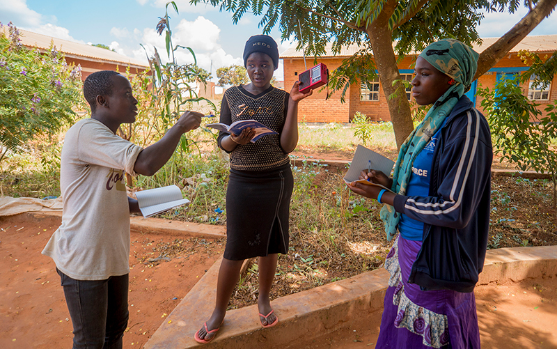 L’École à la Radio ha contado con el apoyo de la radio comunitaria Lego ti la Ouaka en Bambari, una de las áreas donde JRS está presente y acompaña tanto a personas refugiadas internas como a las comunidades locales. En este proyecto los niños y niñas son los grandes protagonistas: cada programa cuenta con la participación de 5 niñas y 5 niños, quienes graban las lecciones en el aula respetando las adecuadas medidas de prevención contra la COVID-19.