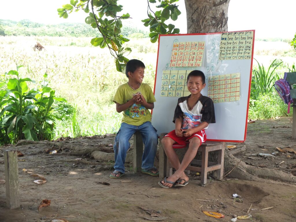 tan solo depositando los materiales de escritura ya gastados en un contenedor reciclado aportado por Entreculturas.
